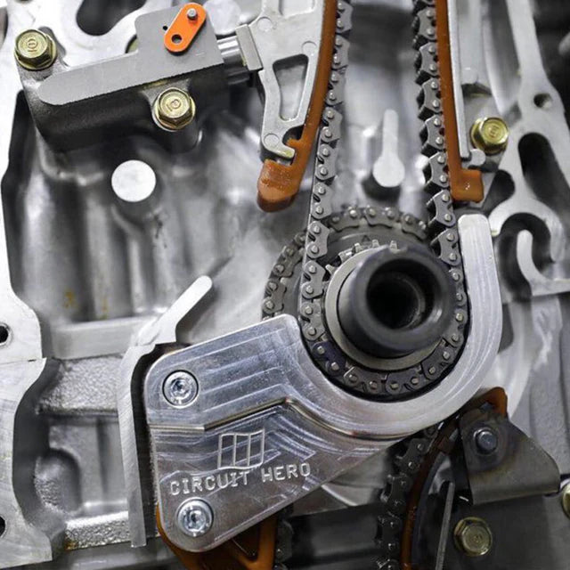 The Circuit Hero lower timing chain guide provides two functions (1) replaces the OEM lower chain guide and (2) also prevents timing chain slippage off the crank pulley chain gear when performing a camshaft swap. If you're a K-series enthusiast, you know about the keeping the timing chain held up when performing a cam swap and how much of a pain it is when it does slip!