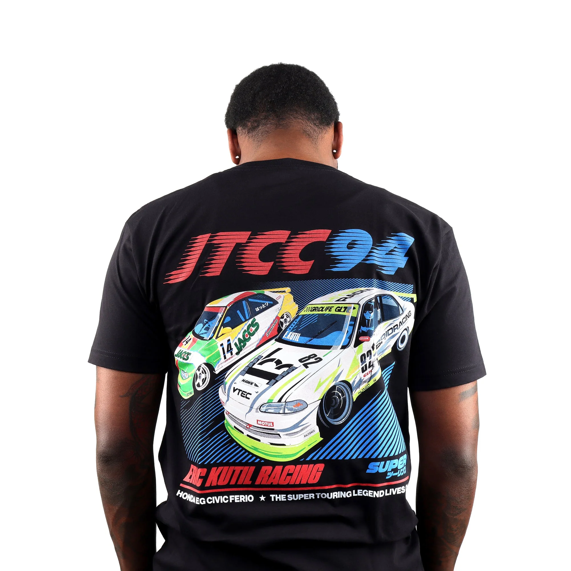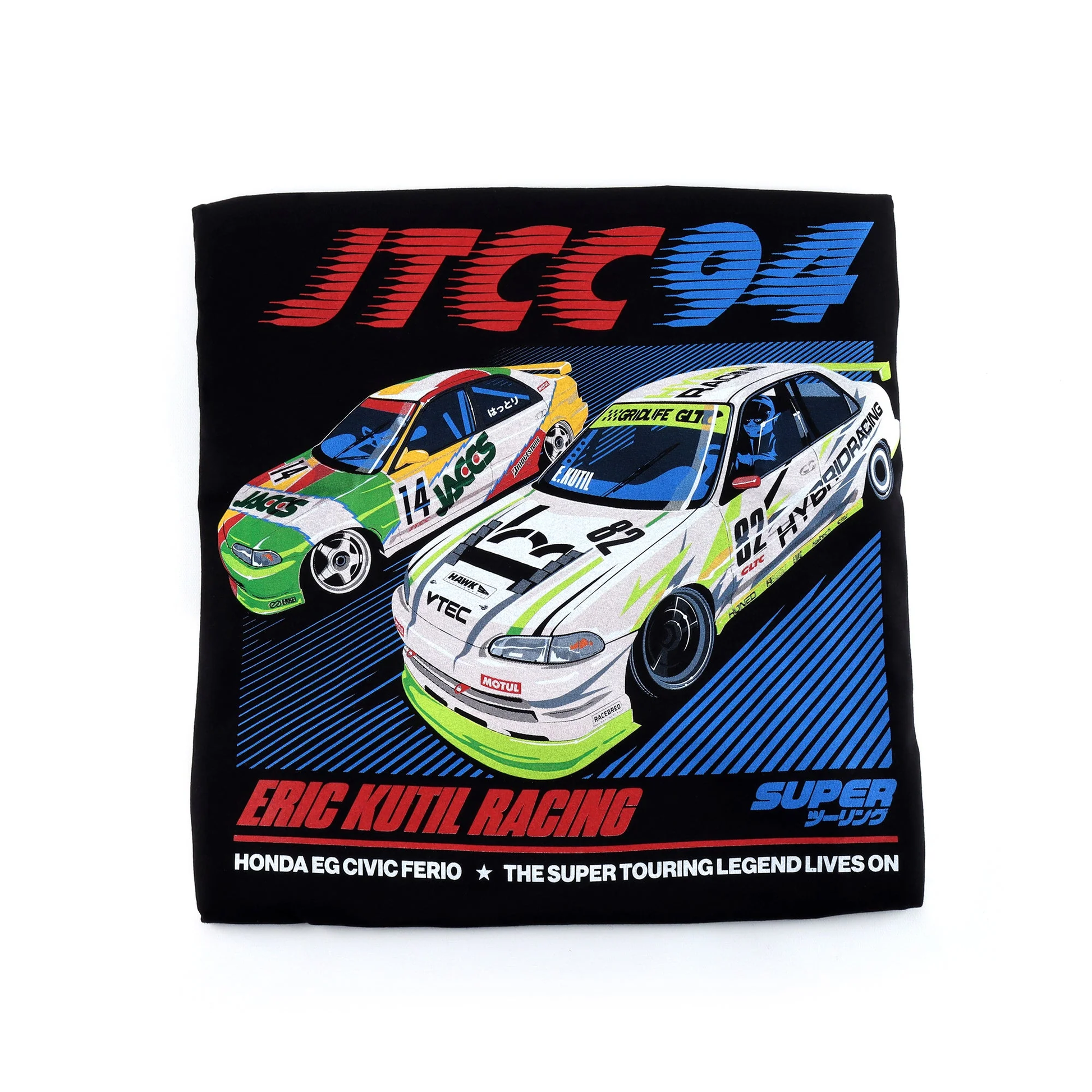 Celebrate the legendary JTCC Supertouring Civic Ferio from the past ('94-'95) and the present ('22 and on) with this special edition Eric Kutil Racing Shirt, the first release of many. The JTCC JACCS Civic Ferio started this EG sedan obsession and inspired the creation of the EKR x Hybrid Racing GLTC Supertouring Civic. These two amazing machines, although decades apart, share the same racing passion that makes Honda great. The Super Touring legend lives on!