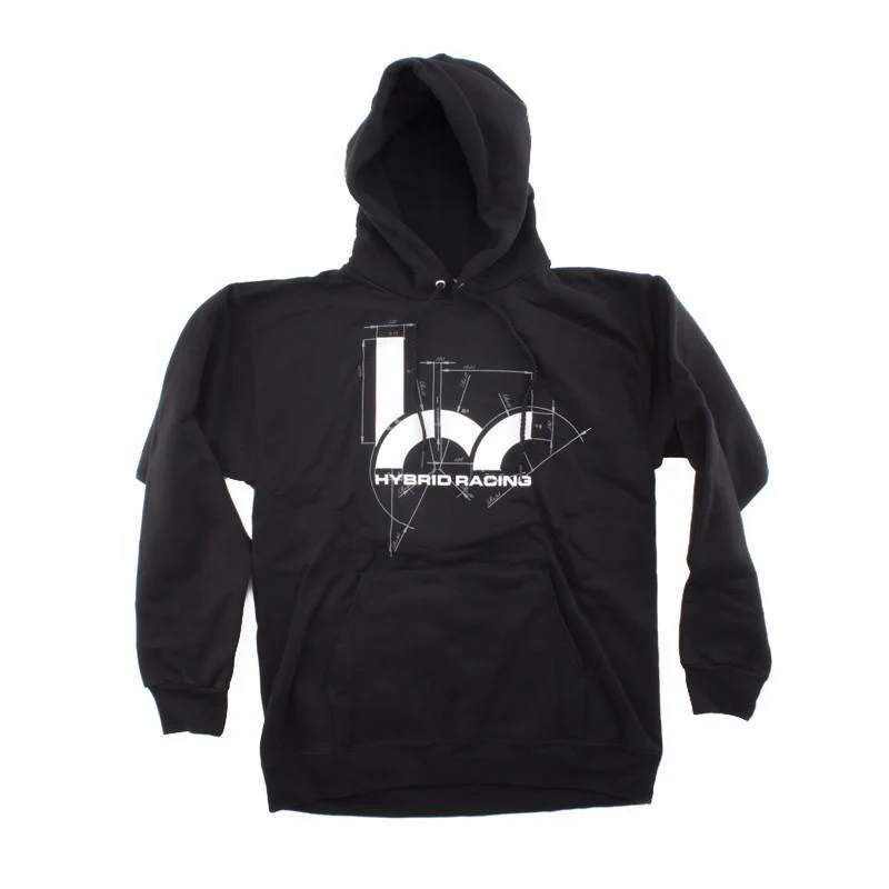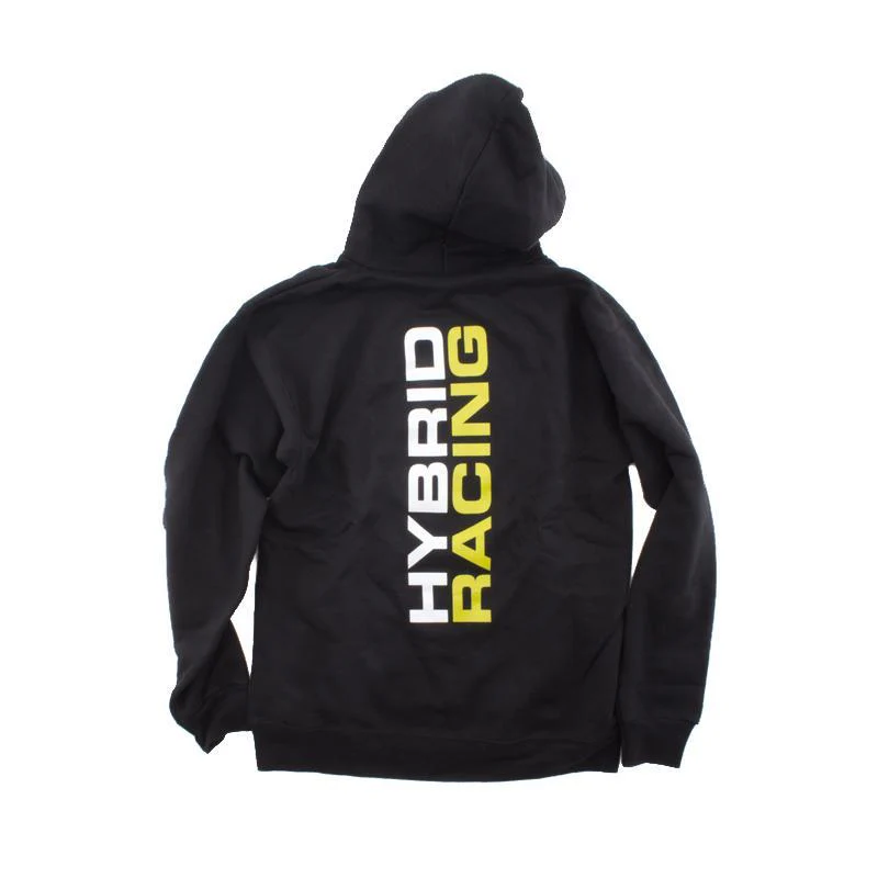 Hybrid Racing Hoodies are printed on 100% Gildan cotton shirts. This hoodie comes with the stacked "Hybrid Racing" logo on the back and a cool take on the "hr" logo on the front. Help spread the word about one of your favorite companies while looking good!