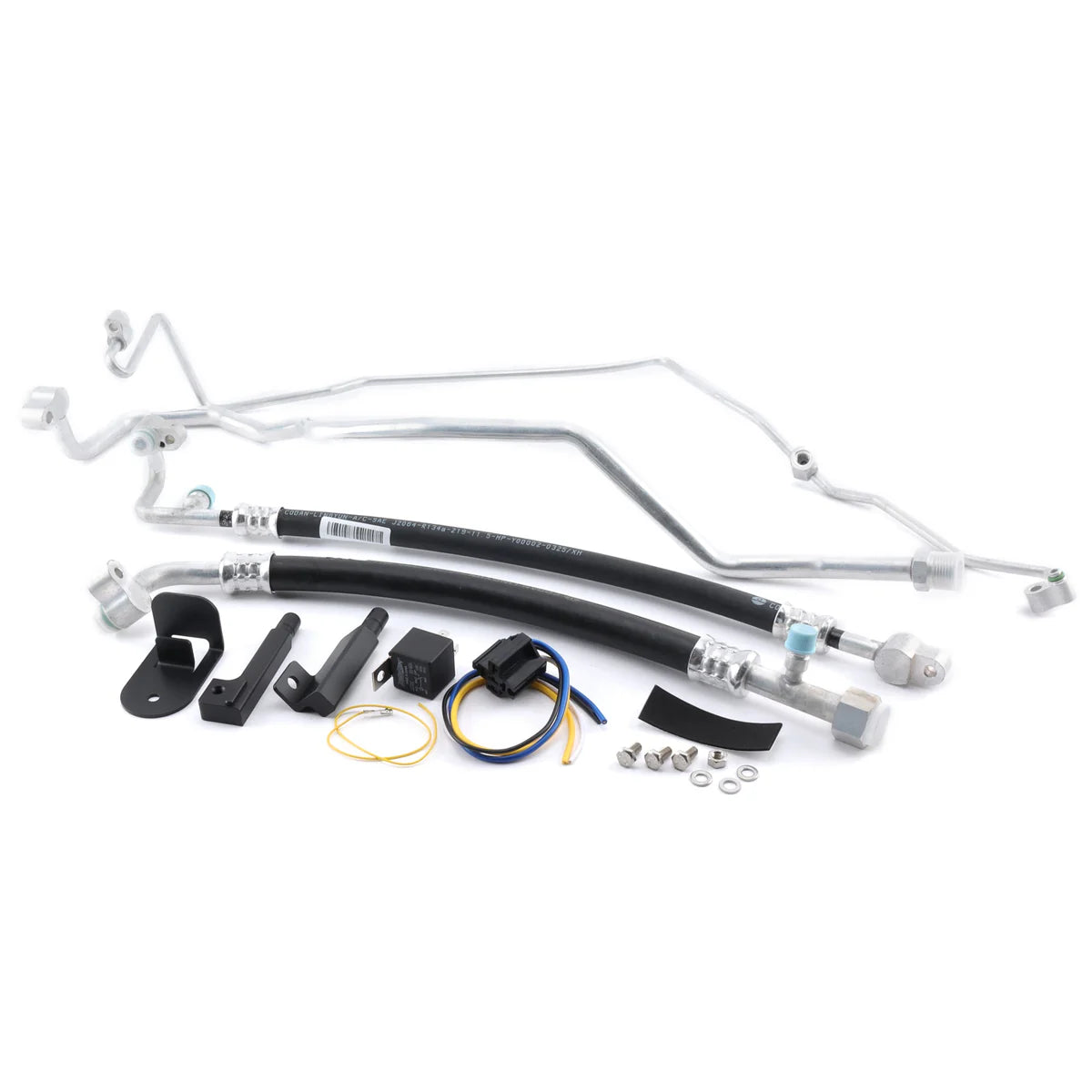 What does the kit come with?The AC kit comes with 4 custom AC lines, 3 mounting brackets, and all necessary wiring and O-rings.