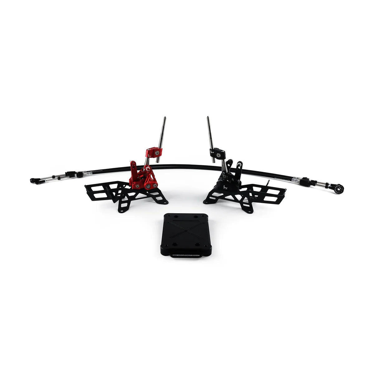 To keep this a 100% Hybrid Racing kit, our Performance Shifter Cables are included which are sized appropriately to run through the firewall for a floor-mounted shifter. Beyond simply connecting the shifter to the trans, they are of superior build quality to OEM units.