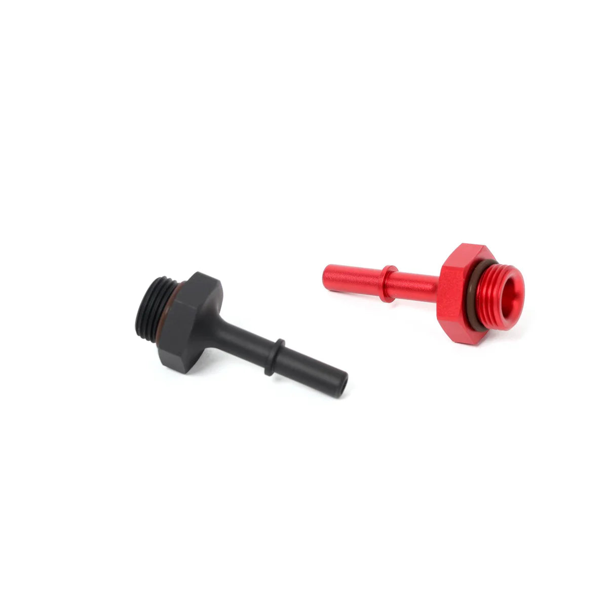 A perfect companion to the Hybrid Racing fuel rail. If you have a 02-05 Civic Si or 02-06 RSX, this piece is for you. Mounted on the end of the fuelrail, this piece mates with the stock fuel line. It features an extended fitting to relax tension on the fuel line and help with clearance. Comes with an O-ring to prevent leaks. E85 Compatible.
