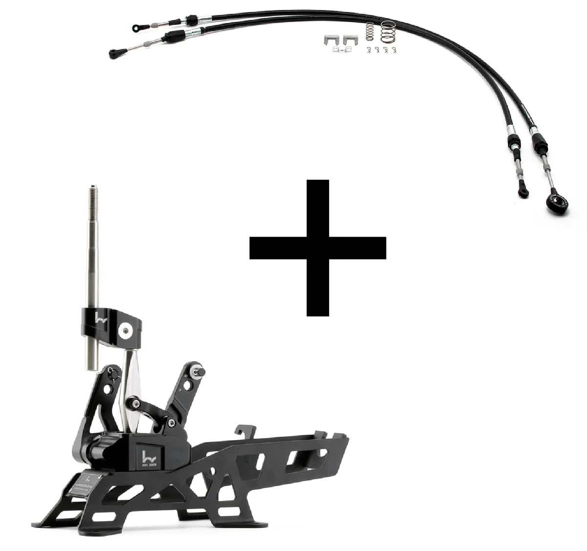 The Hybrid Racing cables are a performance upgrade replacement for stock OEM cables. The solid rod ends, 30% thicker cable core and spherical bearings give the Hybrid Racing cables a firmer, tighter feel over OEM cables resulting in fewer missed shifts and a more connected feel to the chassis.