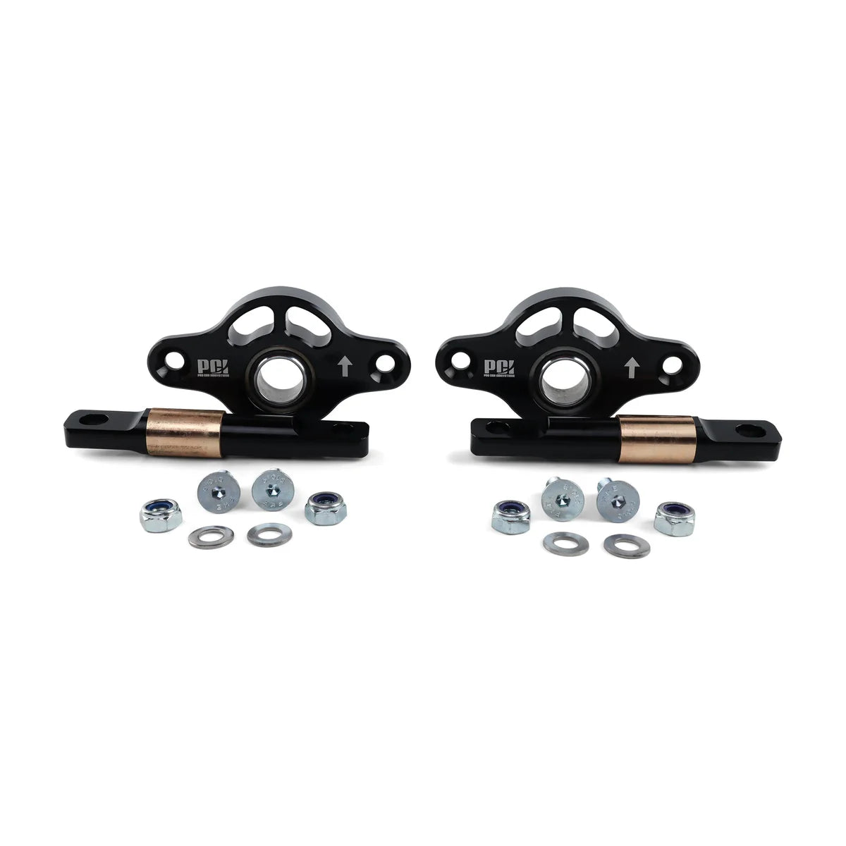 Elevate the driving experience in your 1988-2000 Civic, CRX, or Integra with the Pro Car Innovations Rear Trailing Arm Spherical Kit. Meticulously crafted with CNC Machined 6061/2024 construction, this masterpiece embodies PCI's commitment to performance excellence. Correcting tow link angles for improved tow curves on lowered cars, this product not only enhances braking response but also allows for softer rear springs, transforming your vehicle's dynamics. Eliminating unwanted suspension deflection, PCI's creation is a low-cost, fully rebuildable solution that withstands even the harshest environments. The corrosion-resistant zinc-plated Grade 10.9 hardware ensures longevity and easy maintenance, making it a wise investment. With a laser-etched logo proudly displaying the PCI mark of quality, this product is designed to seamlessly integrate with your vehicle, ensuring optimal performance and a lasting impact on your driving adventures. The installation of the product does require drilling for proper assembly.