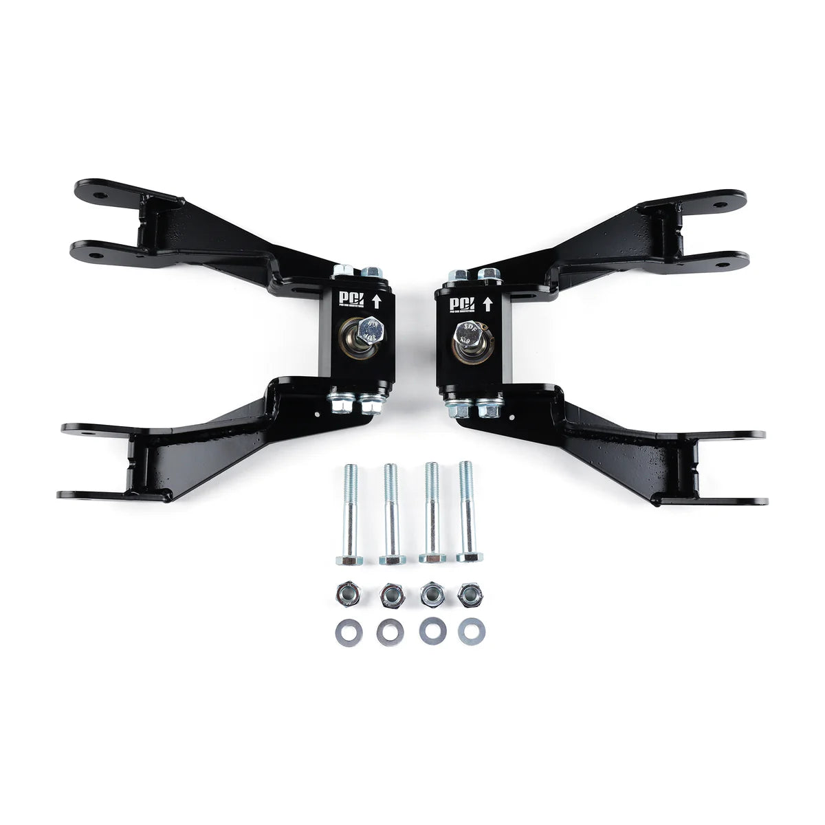 The compact design of these camber arms allows factory suspension travel to be retained, providing drivers with improved tire wear when properly adjusted for their specific application. The stiff 3/16" steel arms eliminate unwanted arm flex, improving cornering, braking, and throttle response. These camber arms are maintenance-free, long-lasting, and fully rebuildable for added peace of mind.